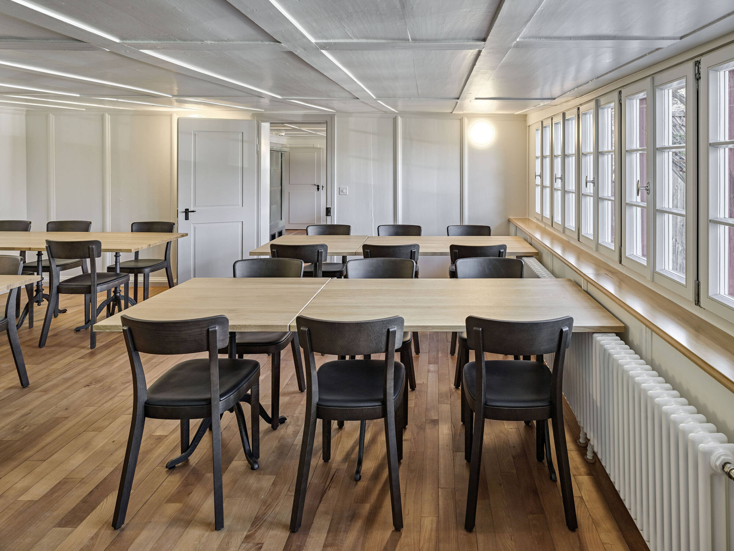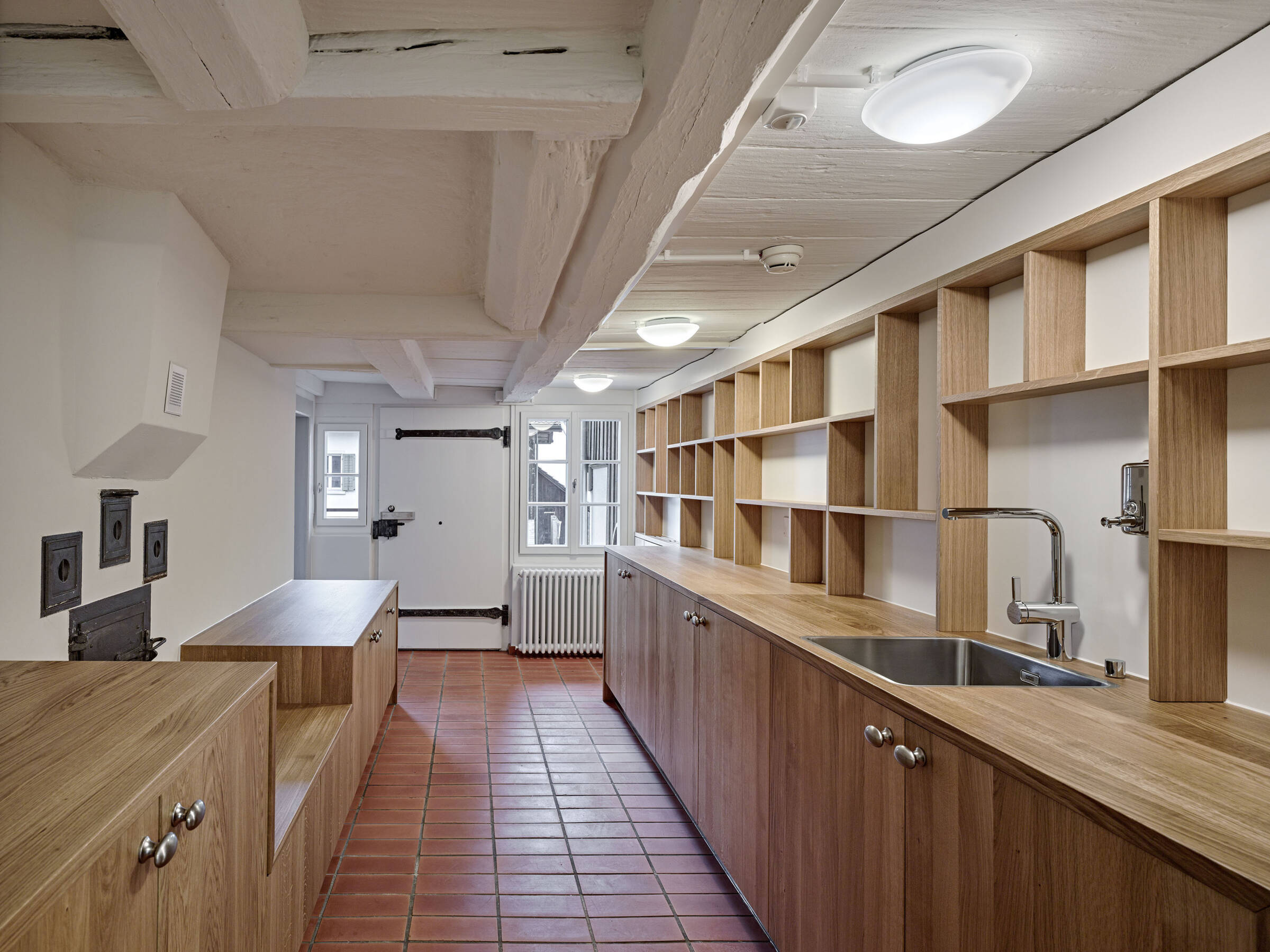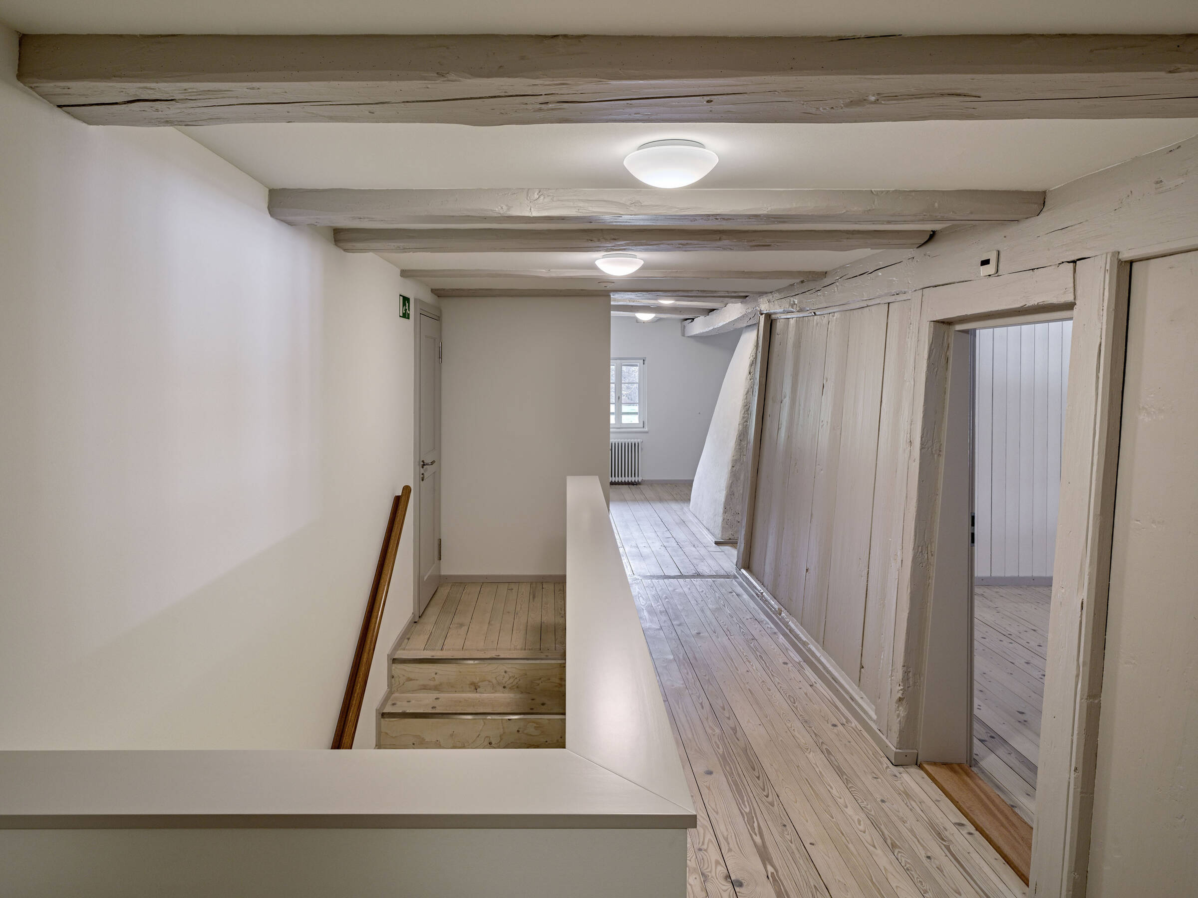 Erneuerungen bleiben bewusst sichtbar, aber behutsam mit dem Bestand verbunden. Das Prinzip der moderaten Erneuerung, der zurückhaltenden Ergänzung, des subtilen Zusammenführens von Alt und Neu zieht sich im Inneren und Äusseren als übergeordneter Gedanke durch.