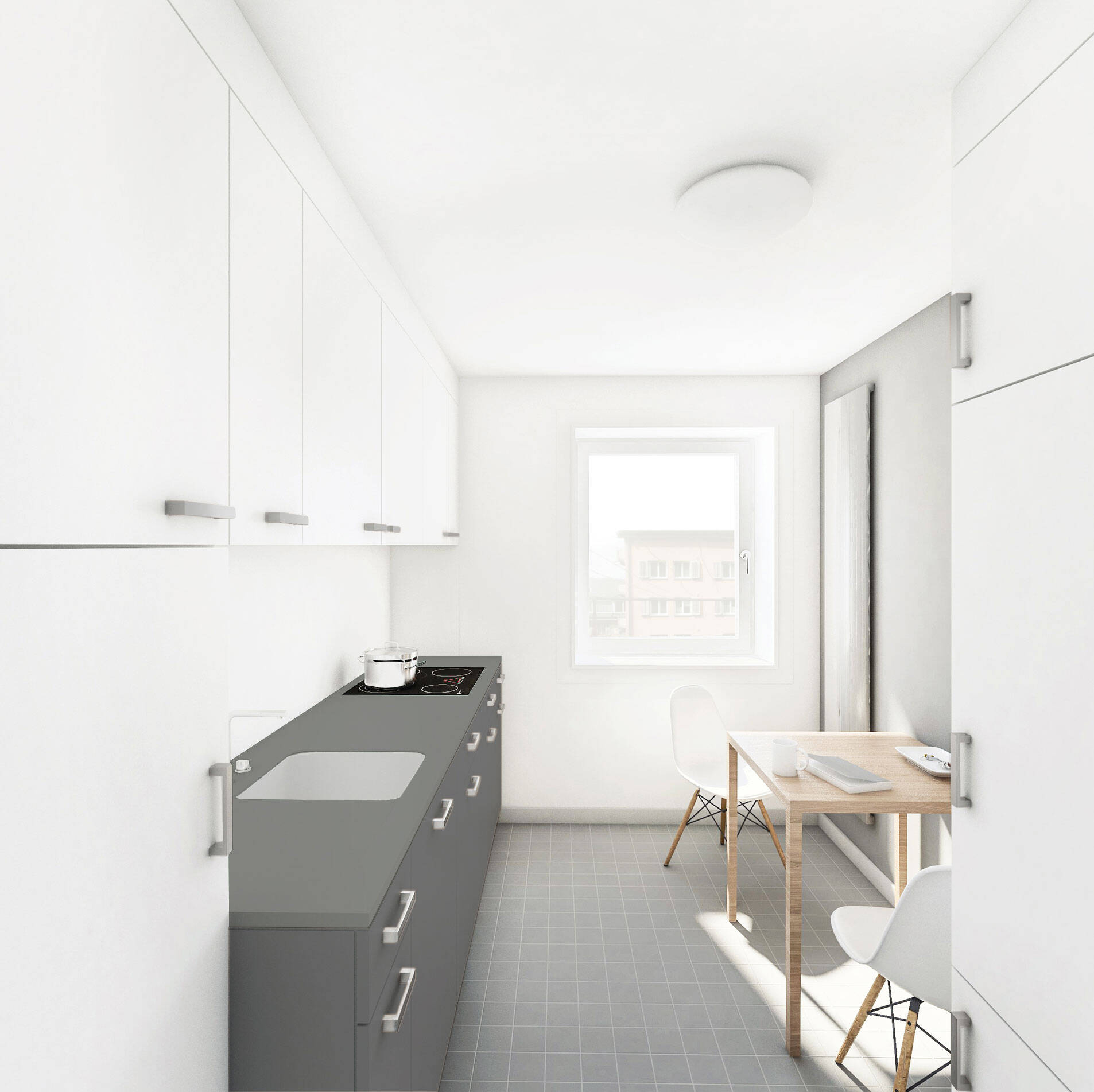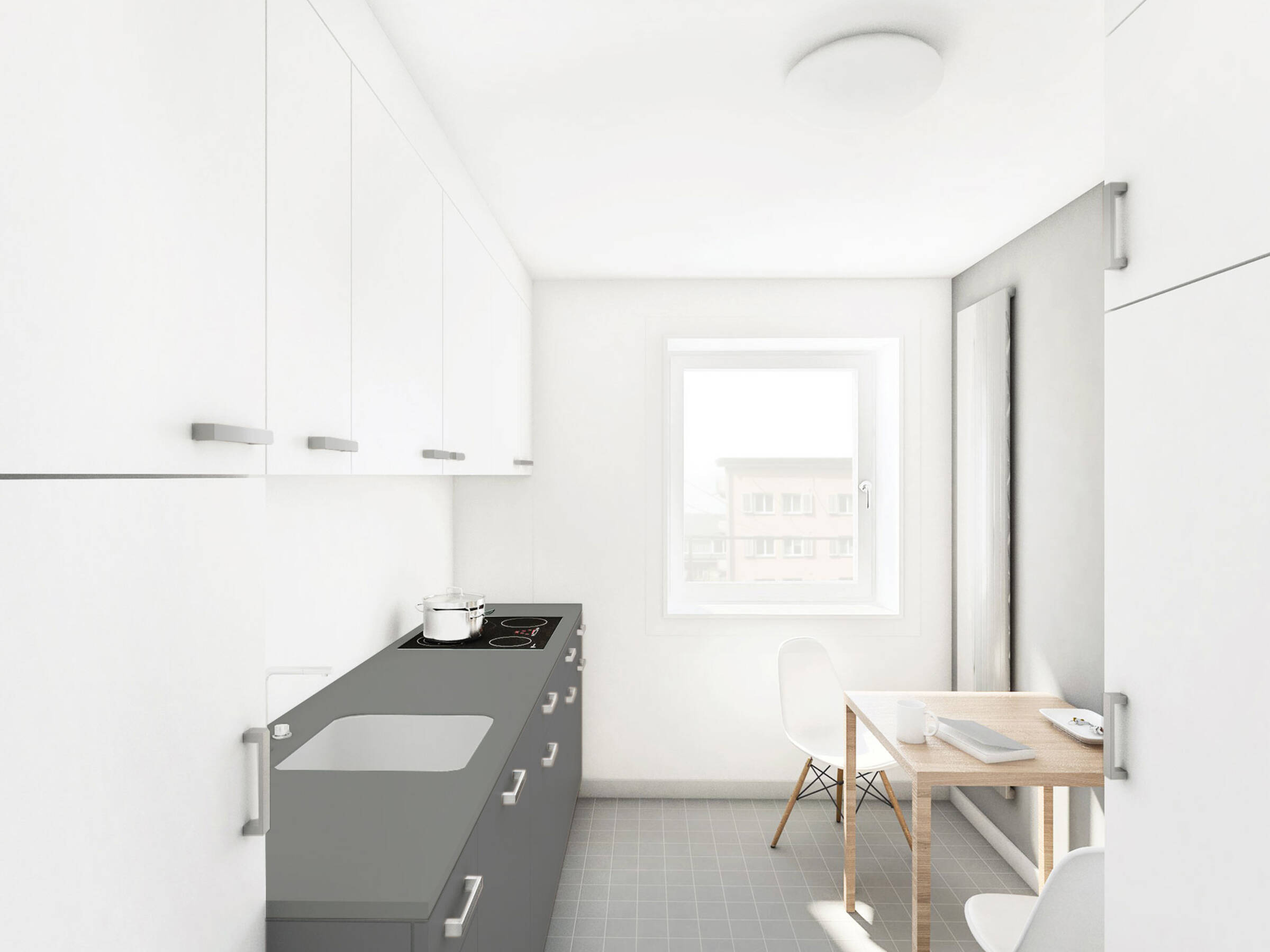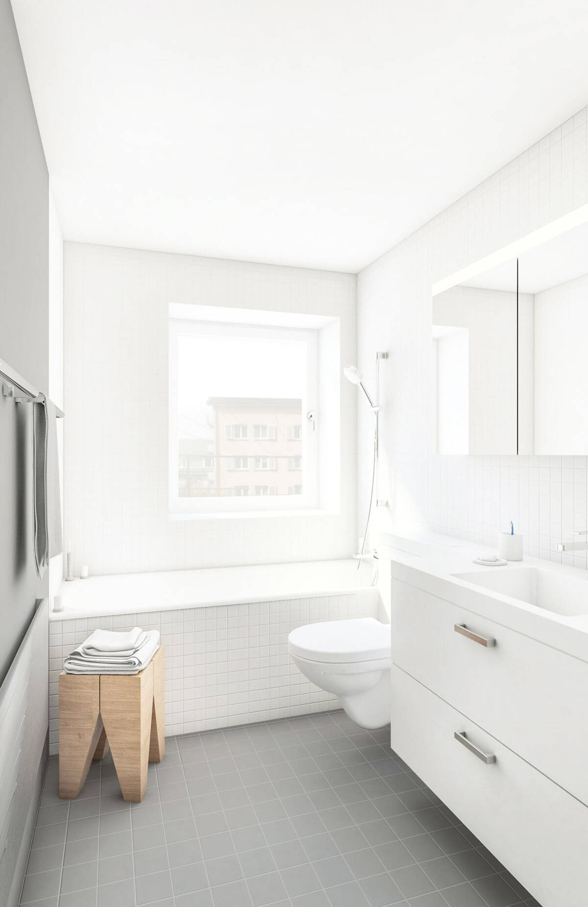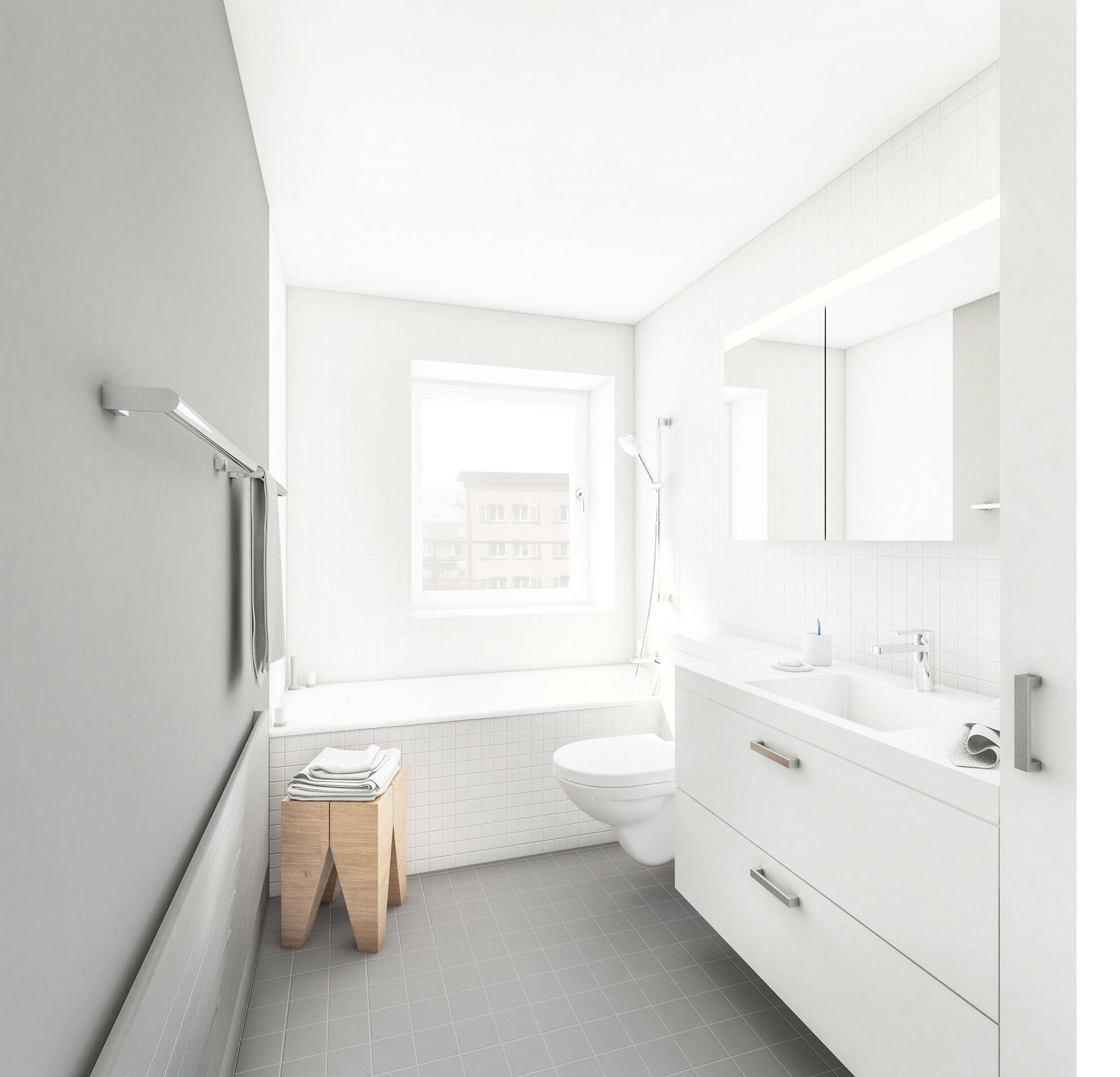 Die vier Gebäude im Norden der Siedlung sind im bewohnten Zustand sanft saniert worden. Die bestehenden 3.5- und 4.5-Zimmerwohnungen blieben weitgehend unverändert, lediglich die sanierungsbedürftigen Küchen und Nasszellen wurden zeitgemäss erneuert.