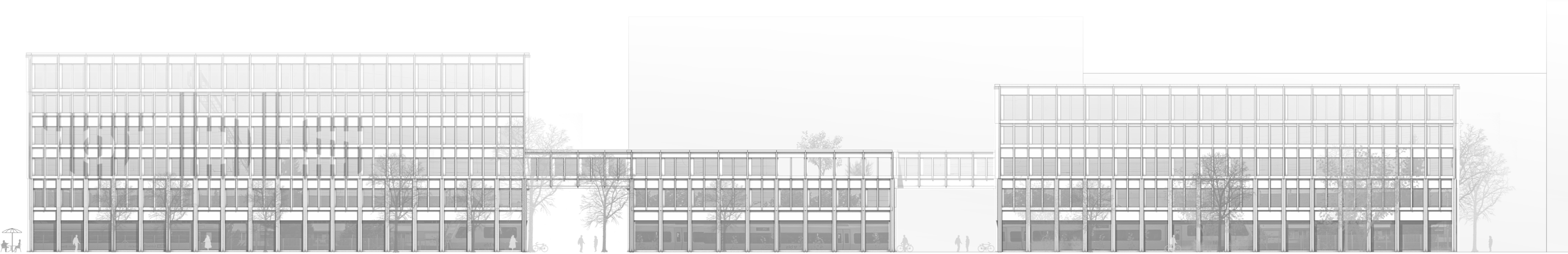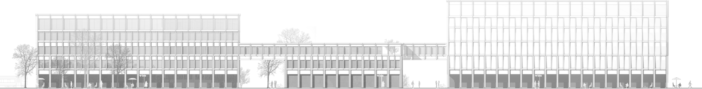 Der Geschäftssitz der BLS bildet den Auftakt des Areals «Suttergut Nord» in Burdorf. Die Fassaden der drei Gebäude sind nach einem übergeordneten Gestaltungsprinzip gegliedert und in der Höhenentwicklung subtil differenziert, was die Gebäudekörper als eigenständig, aber zusammengehörig in Erscheinung treten lässt. Die versetzten Passerellen vermitteln einerseits zwischen Gleisfeld und der Quartierstrasse Ost-West mit Zentrumsplatz und «Aebihof» und verbinden andererseits die Gebäude, wobei das «Haus D» ganz nach dem Motto «BLS verbindet» einen angemessenen Treffpunkt mit Dachgarten und Bezug zum Gleisfeld bietet. Räumliche Offenheit und Transparenz prägen das Erscheinungsbild im Innern sowie im Äussern des Gebäudes und versinnbildlichen ein modernes und transparentes Dienstleistungszentrum.