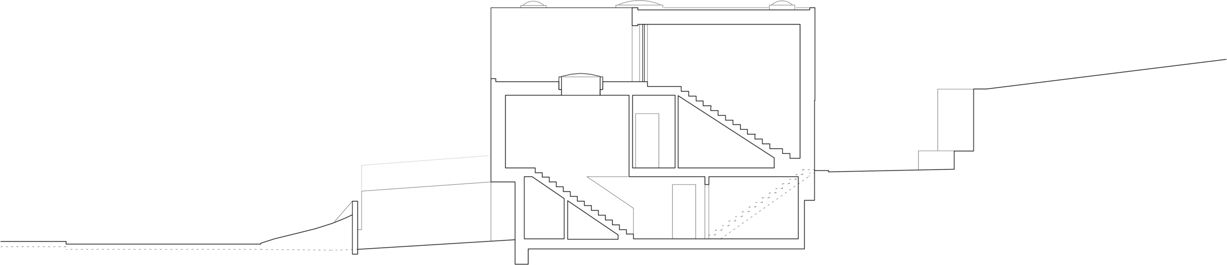 Das Haus für ein Paar liegt an einem Hanggrundstück in Zumikon – auf mittlerer Höhe zwischen Zürichsee und Pfannenstielrücken. Inmitten von Einfamilienhäusern der 1940er bis 70er Jahre gelegen, wird die Parzelle von beengten Platzverhältnissen und einem steil abfallenden Terrain zu einer stark befahrenen Strasse bestimmt. Der rechteckige, klar konturierte Sichtbetonbau ist quer zur Hauptstrasse ausgerichtet und reagiert auf den aus der Hanglage resultierenden Niveauunterschied in Form einer besonderen Eingangssituation. Man betritt das Gebäude auf Strassenniveau im Tiefparterre, parallel zur Garage, und taucht über eine einläufige Treppe in einem erleuchteten Entrée auf Erdgeschossniveau auf.