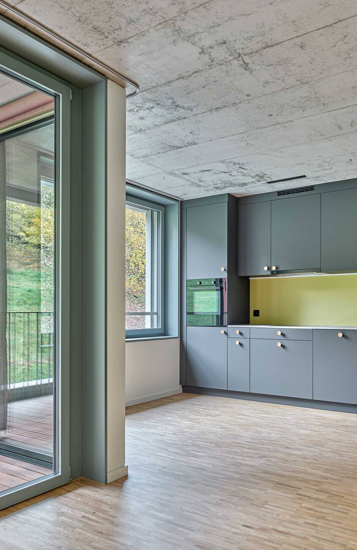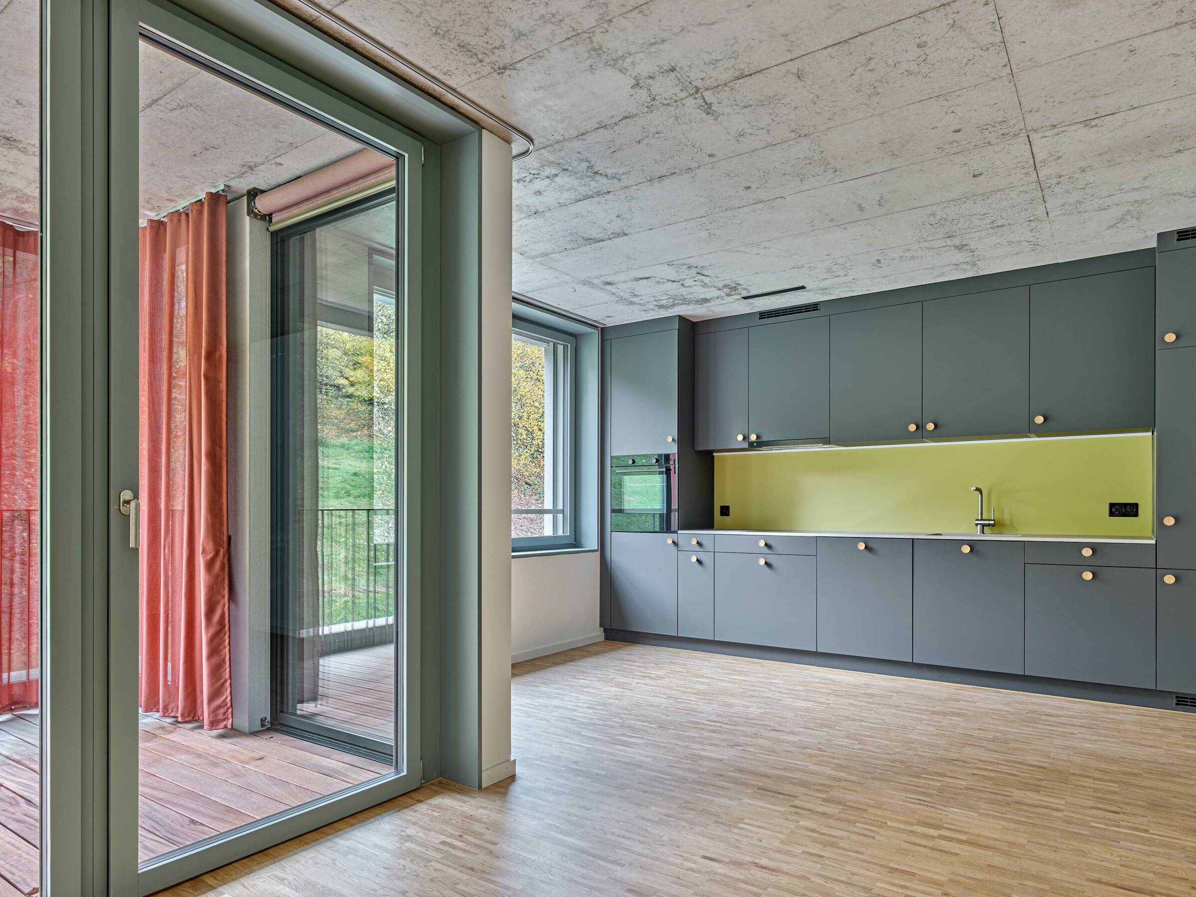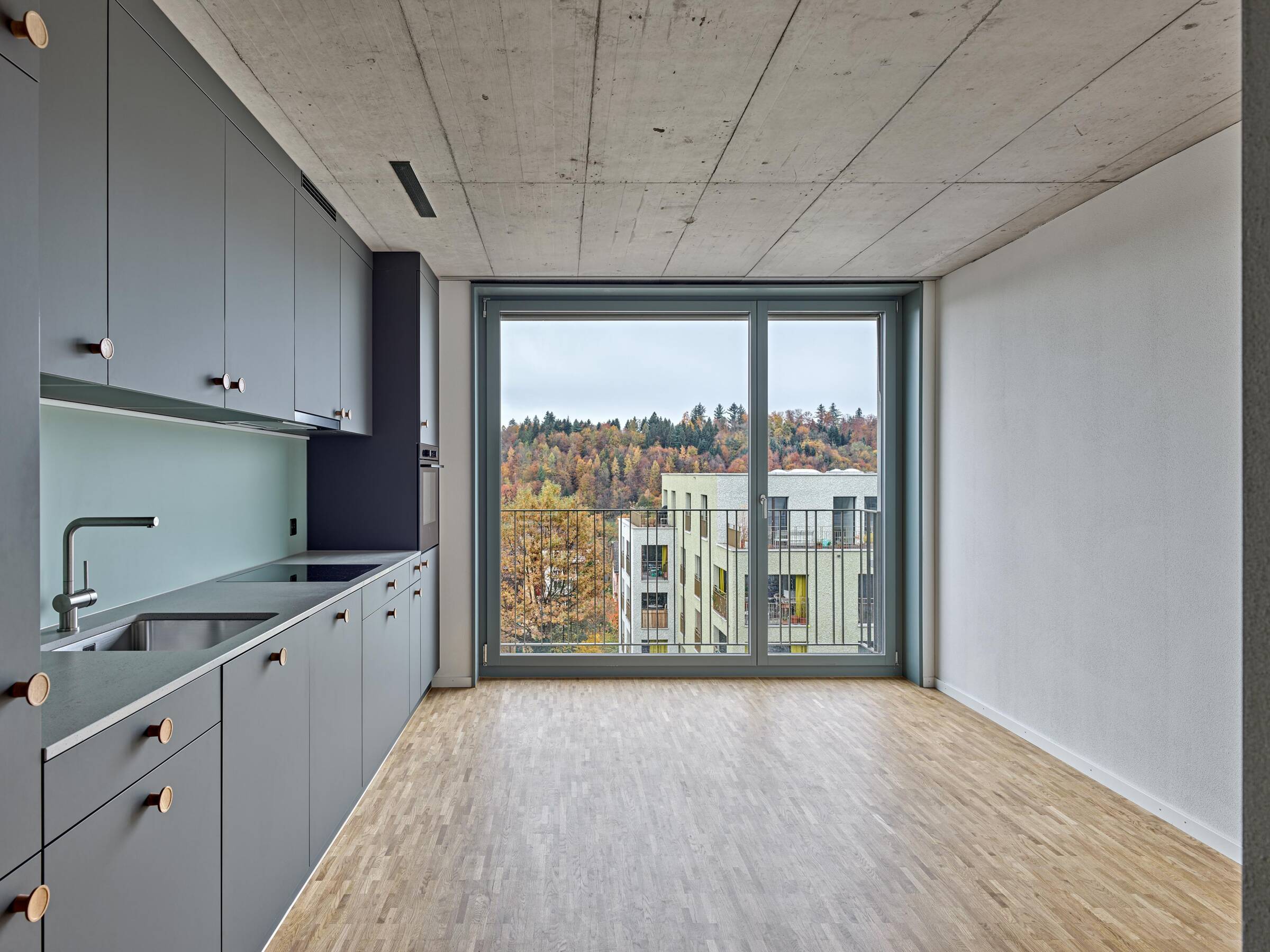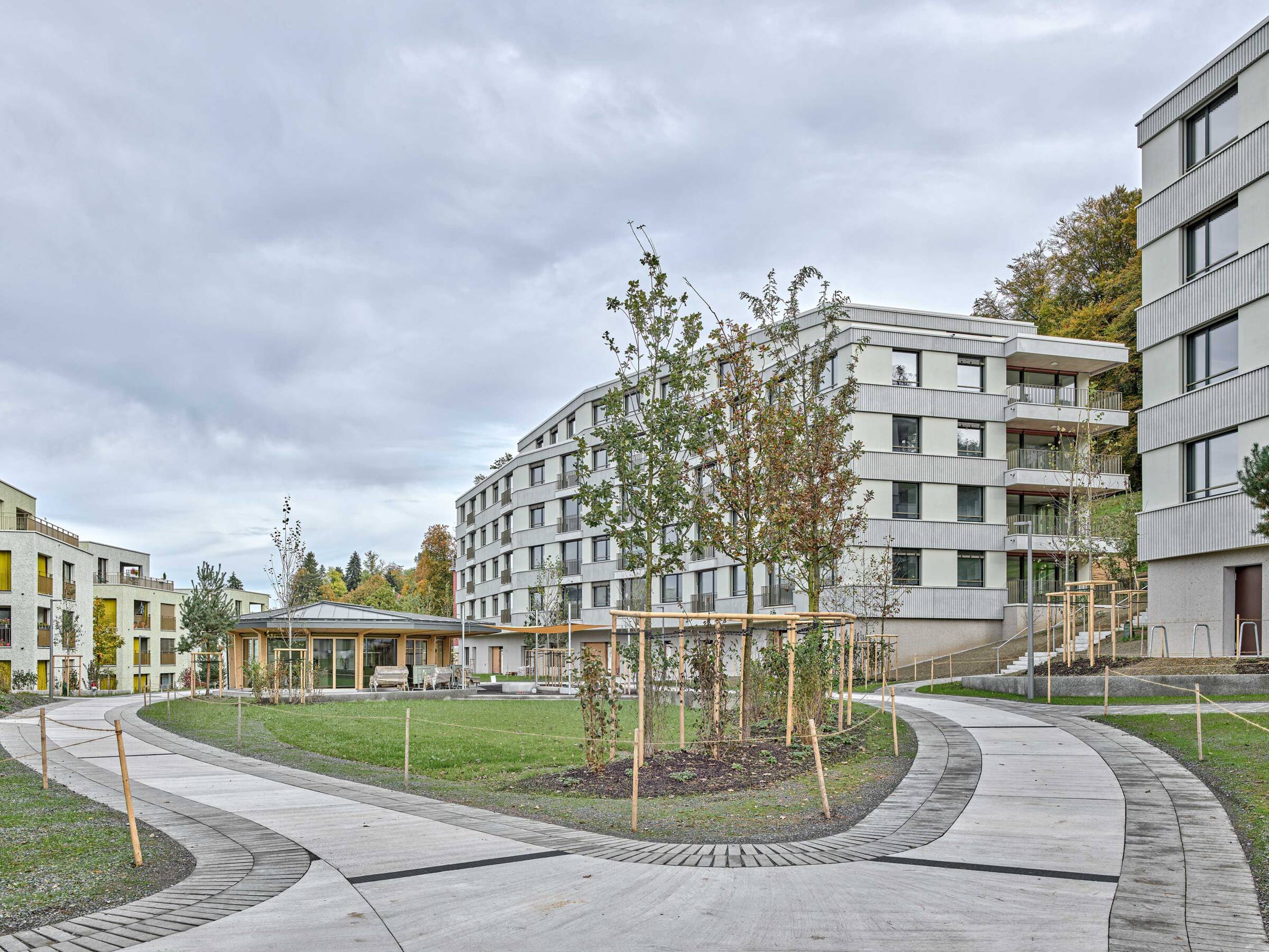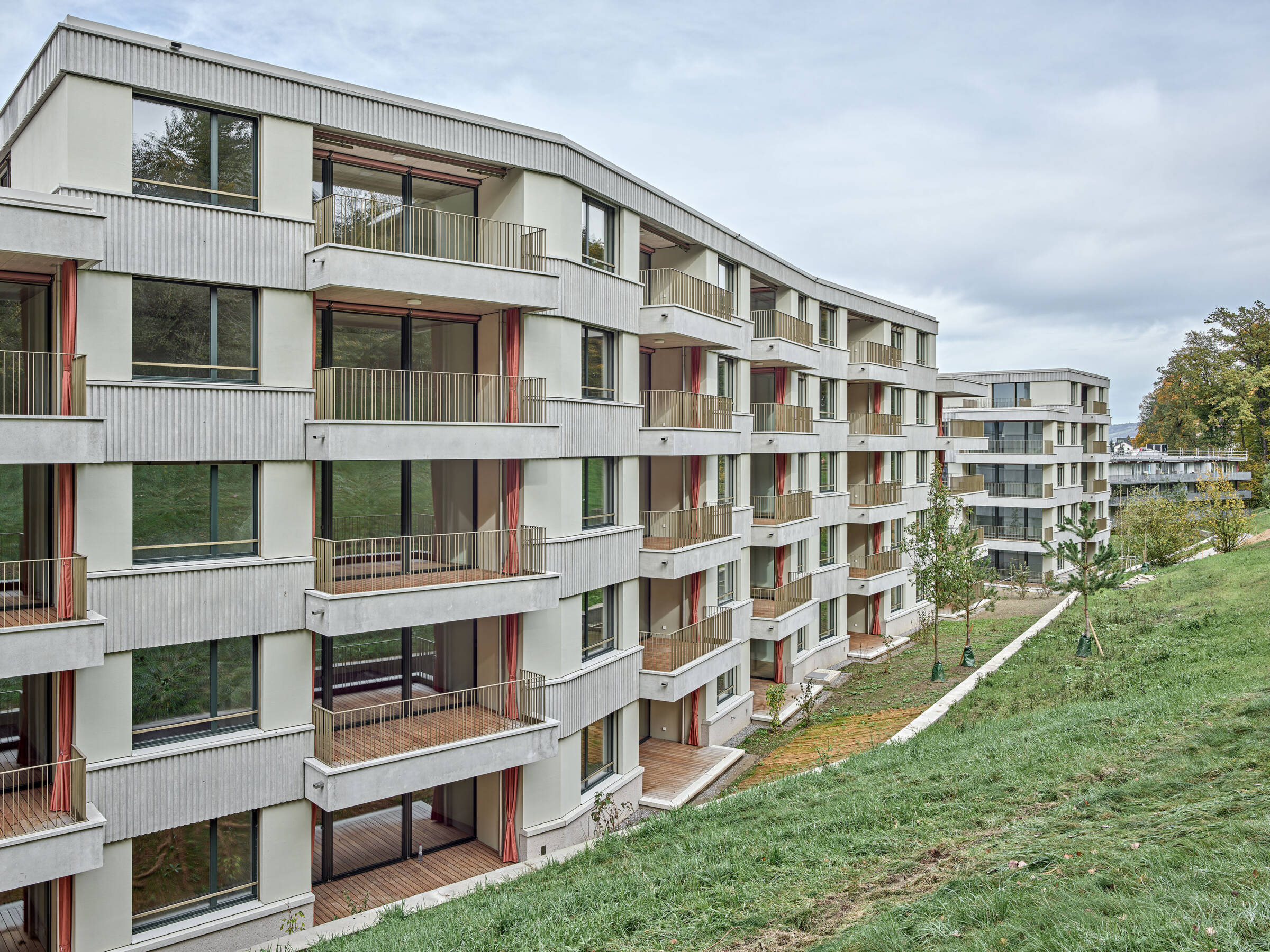 Dadurch entsteht eine städtische Siedlung, die sich selbstverständlich ins Quartier einfügt, ein ausgewogenes Verhältnis zwischen Dichte und Freiraum schafft und in sich eine starke Identität bildet. Insgesamt werden total 184 Wohnungen mit verschiedenen Grundrisstypologien und -grössen angeboten. Alle Wohnungen profitieren von einem Bezug zum neuen gemeinschaftlichen Siedlungsraum - auch die Bestandsgebäude, welche dies über eine neue Ausstülpung der Loggien gewähren.
